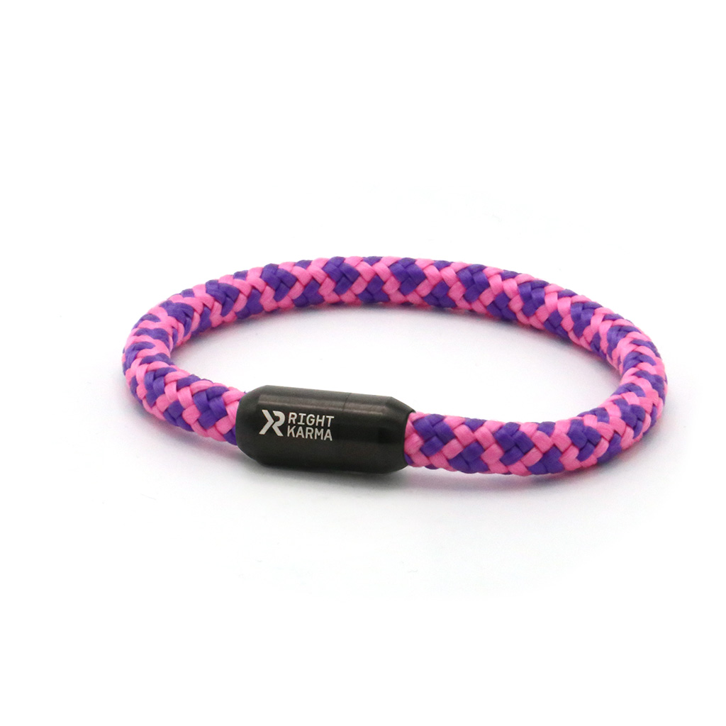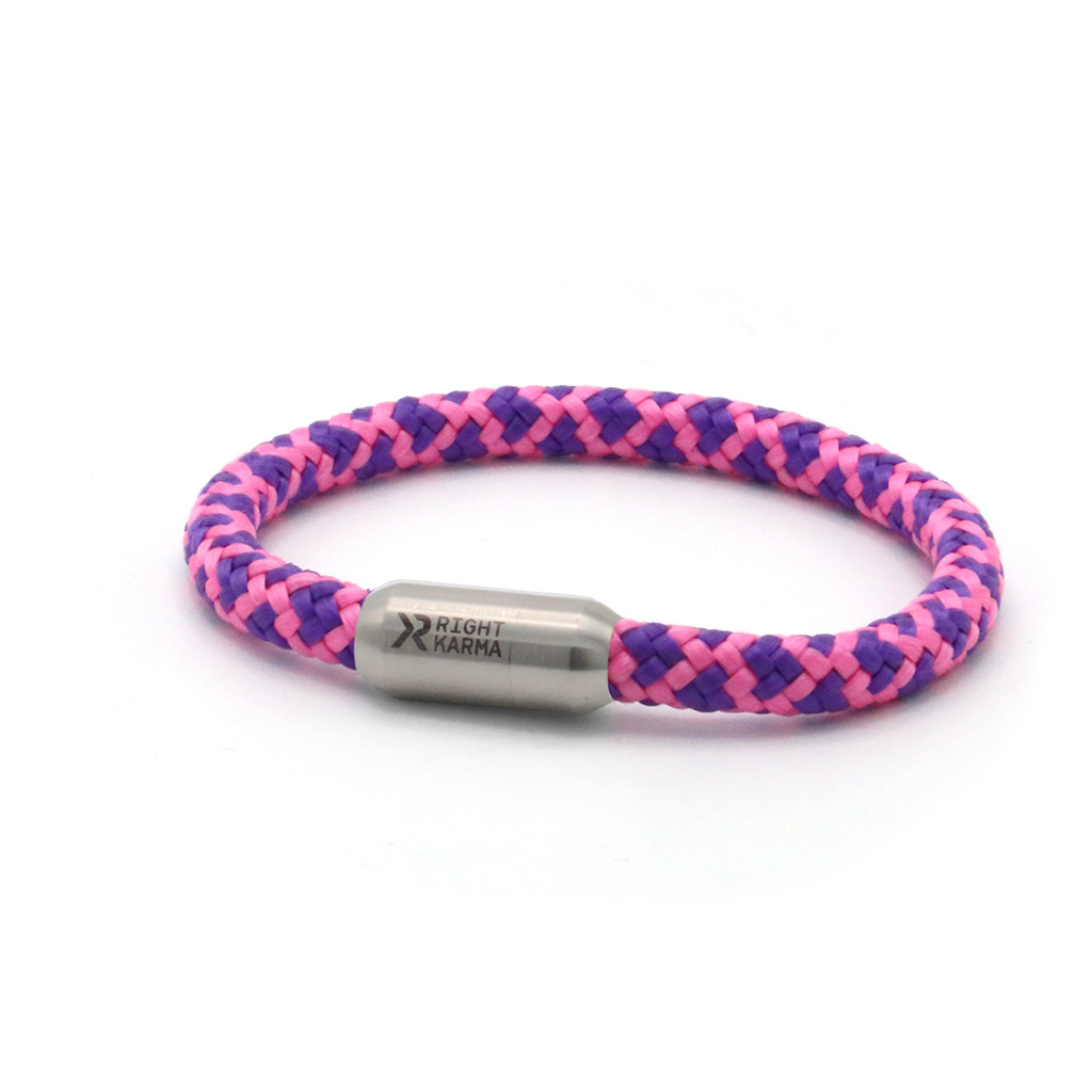 Armband funky aus unserer Armband Kollektion happy vibes mit hochwertigem 6mm Segeltau sowie starkem Magnetverschluß. Vollständig konfigurierbar. Liebevoll handgefertigt für dich in Deutschland. Armband Funky violett mit pinken Details aus Segeltau und Magnetverschluss in Schwarz, Blau, Silber oder Gold. Bunt, auffällig und voller Energie. Ideal auch als Freundschaftsarmband und als Geschenkidee.